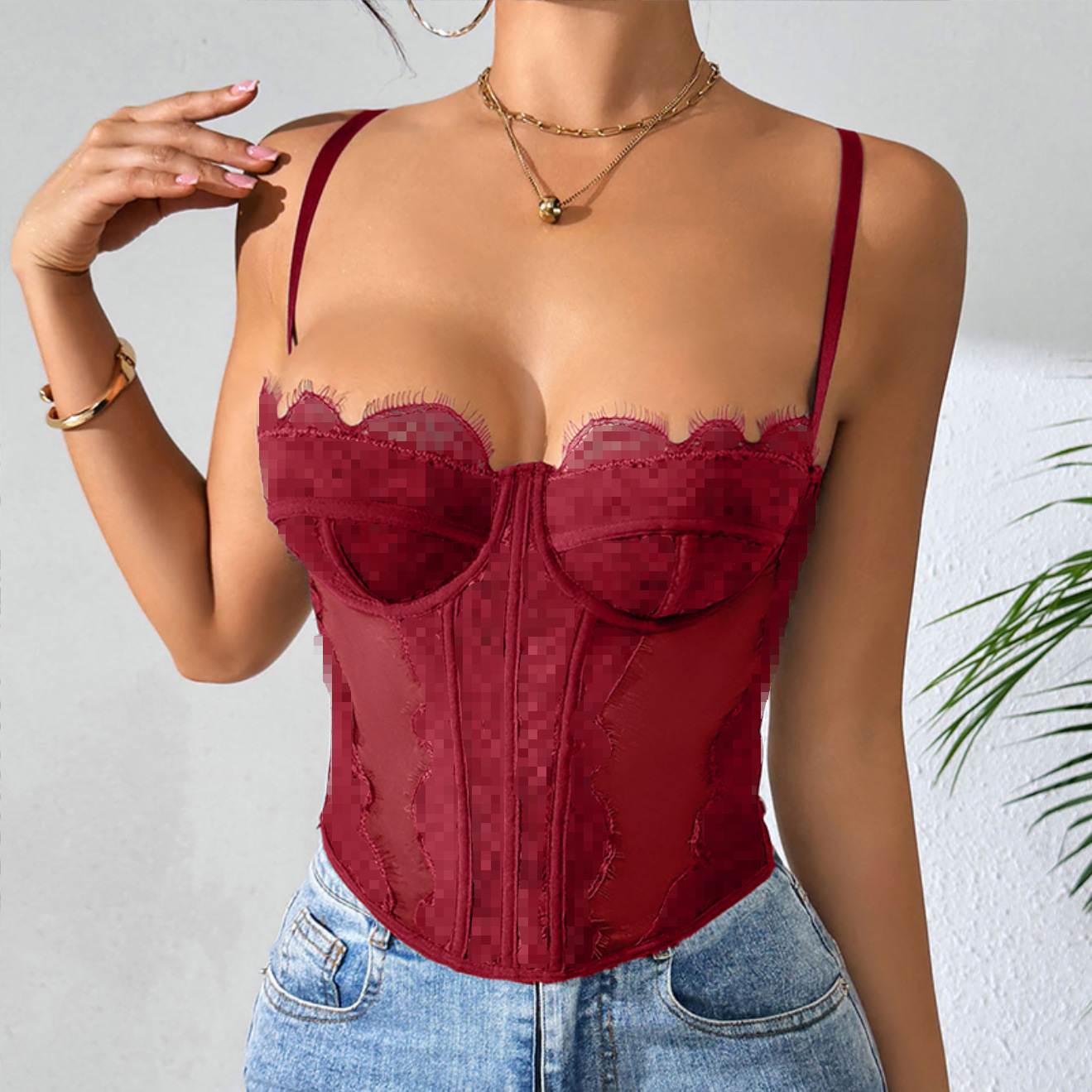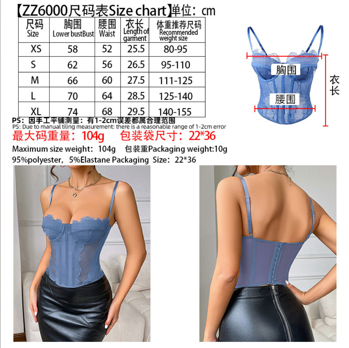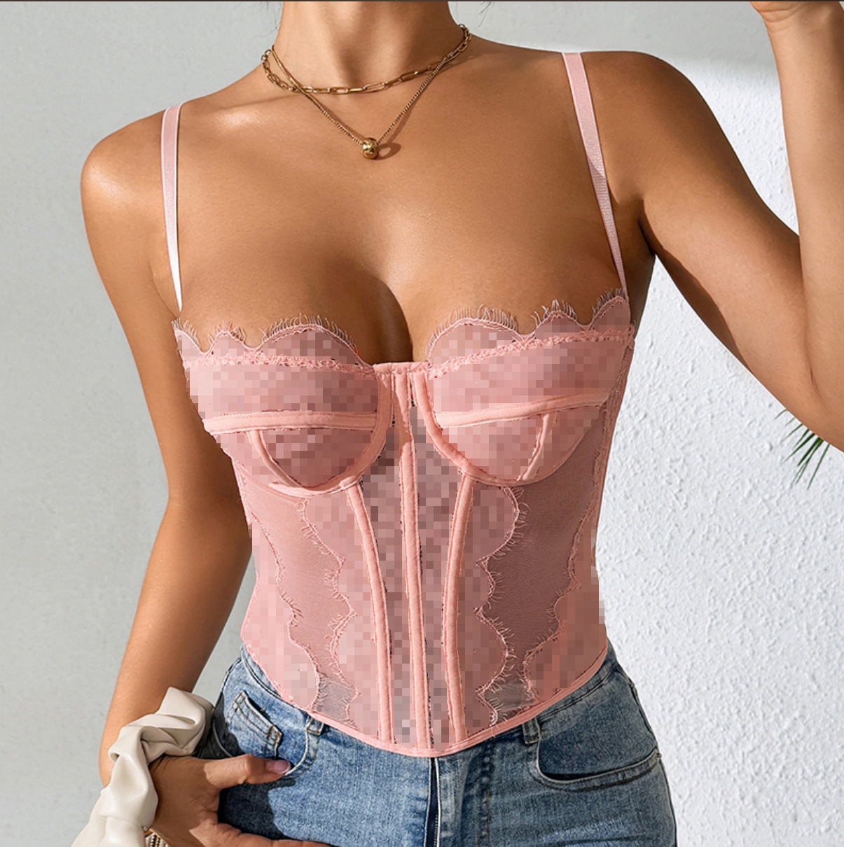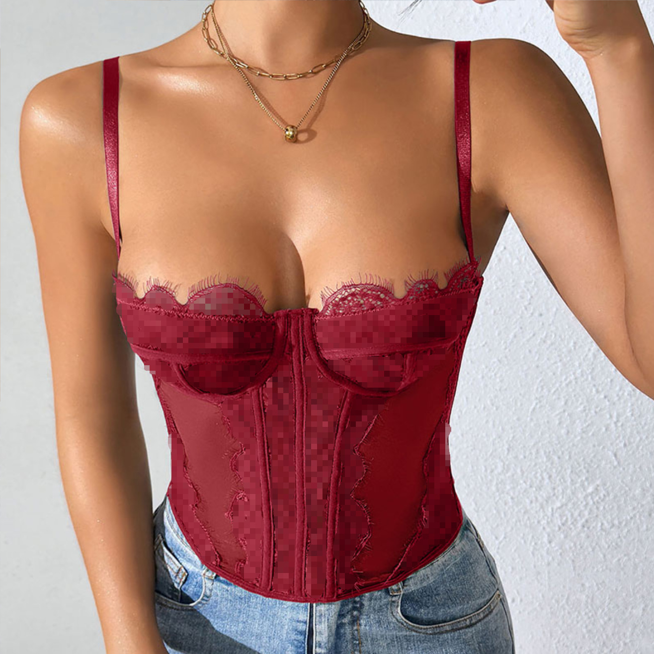Women/Girl Sexy Gather Slim Fingerbone Bust Eyelashes Lace Suspender Vest ZZ6000#