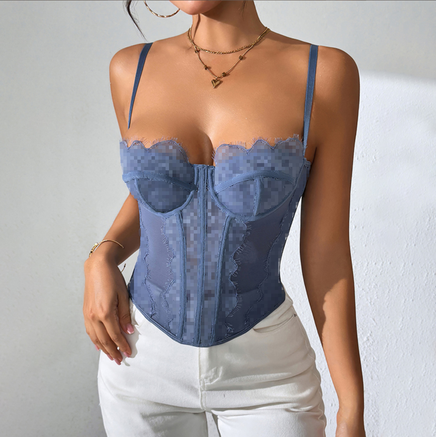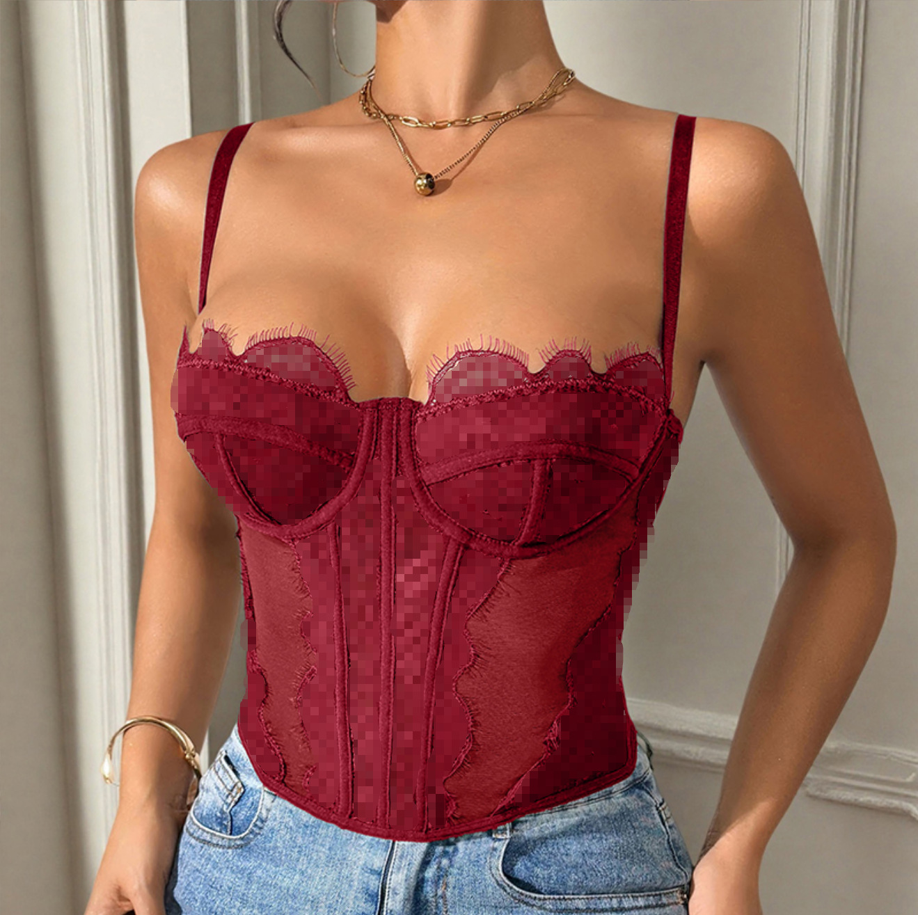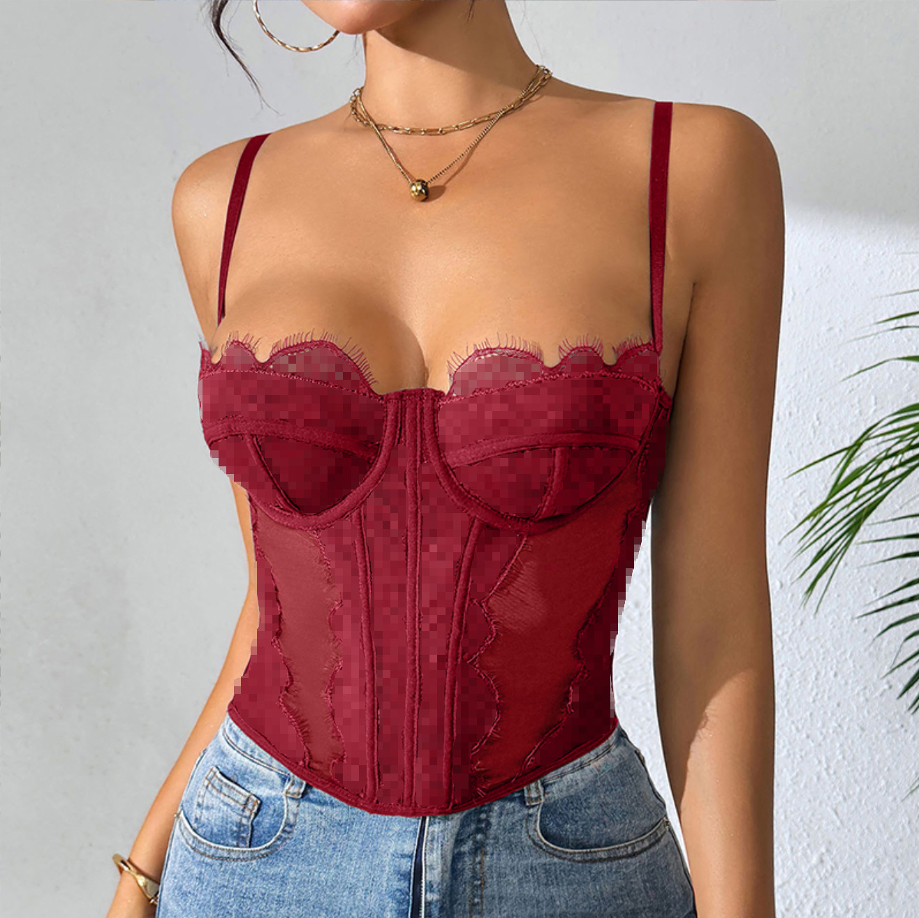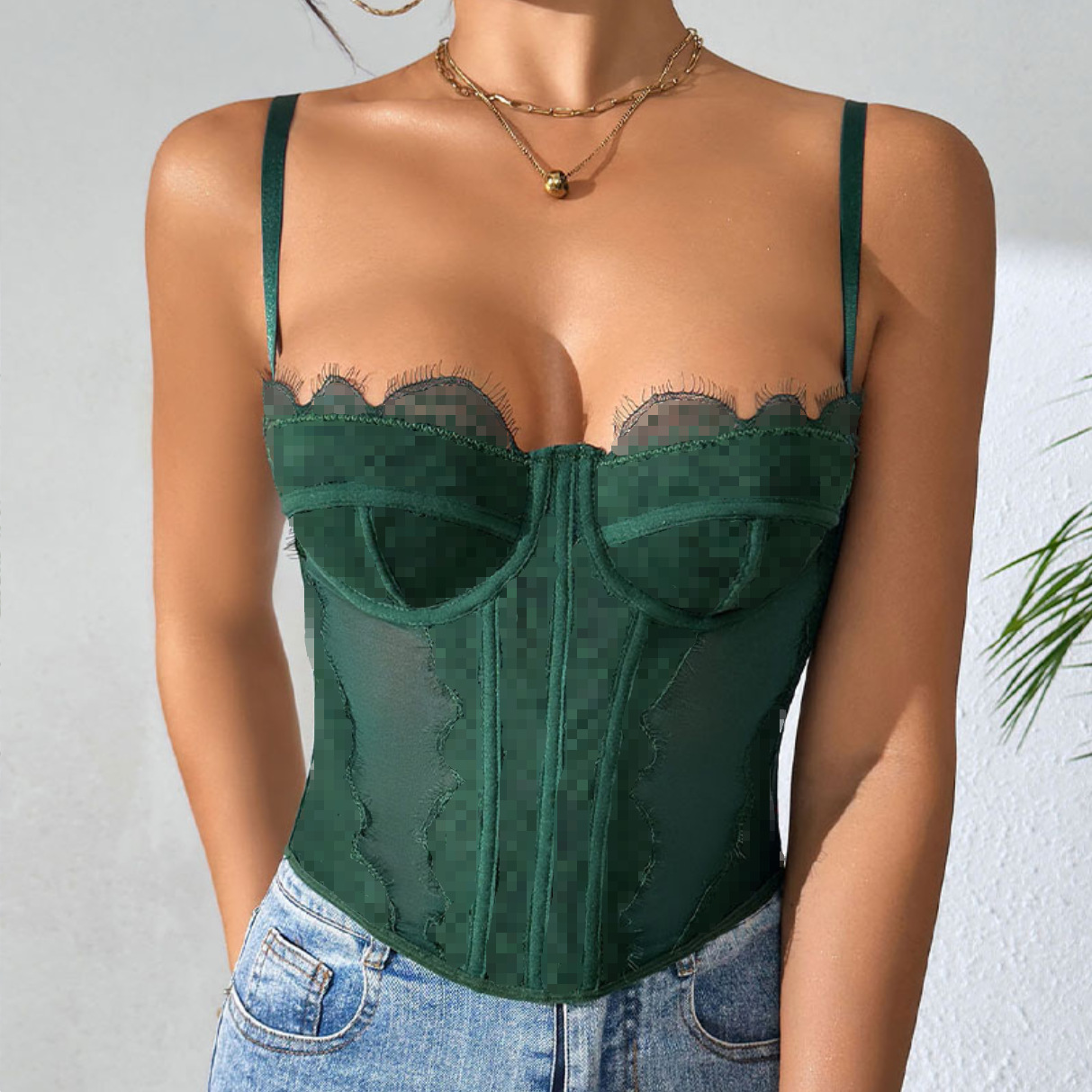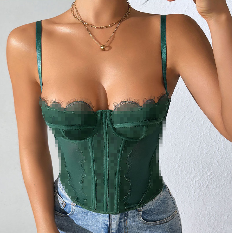 Women/Girl Sexy Gather Slim Fingerbone Bust Eyelashes Lace Suspender Vest ZZ6000#